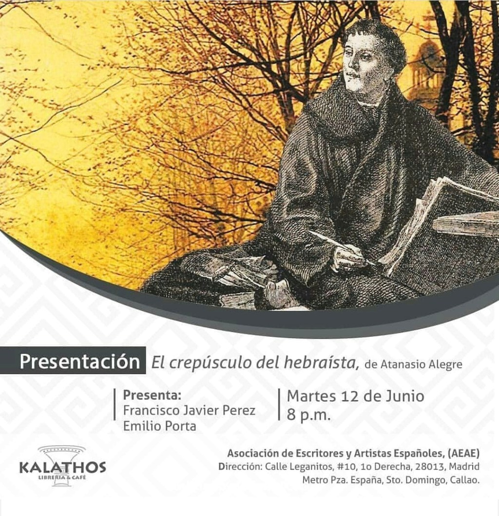 Madrid, junio 2018. Acusado de hereje, perseguido por conversos judíos al cristianismo, el filósofo humanista alemán Johannes Reuchlin, víctima de los tiempos convulsos de la Reforma luterana, del poder y de “los bamboleos de la corrupción” -como si se tratara de un titular de hoy-, renace en la pluma del escritor español Atanasio Alegre en El crepúsculo del hebraísta, y se presenta este próximo 12 de junio en la Asociación de Escritores y Artistas Españoles en la calle Leganitos 10, a las 20:00h.
