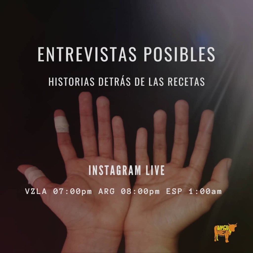 Esta iniciativa derivó en Entrevistas Posibles, un ciclo de lives publicados en @vacaviejavzla, donde tomaron una muestra de unos 30 casos de los cocineros que participaron en RP, para contar desde varios ángulos las historias con que se toparon, de una manera desenfadada y “a calzón quitao”. “Nos pareció importante mostrar la realidad detrás de la “felicidad” que representa una foto en ig, y tirar un cable a tierra poniendo el foco en el lado humano. Aquí podemos encontrar historias de lucha, de dolor, de éxito, locura, sacrifico, superación e incluso desesperación en medio de los momentos que vivimos actualmente a nivel mundial. Entre risas y lágrimas, se habló y pasó de todo”.