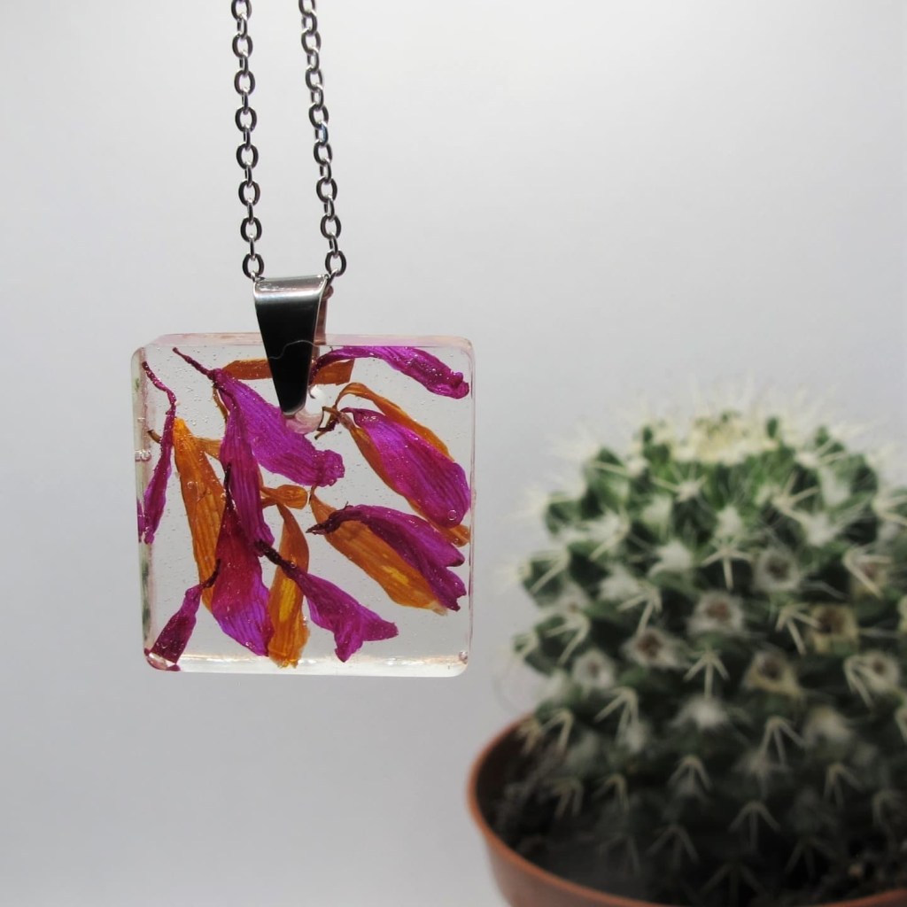 «La primera técnica que aprendí fue la de los accesorios de soutache, y posteriormente la resina con elementos naturales, la cual ha sido una gran satisfacción por permitirme unir un poco mi carrera con el arte: ya que yo misma preservo las plantas y otros organismos, y en muchos casos termina siendo como un experimento a ver «¿cómo irá a quedar?». Cada pieza es única sin importar la técnica, como todo en la naturaleza».