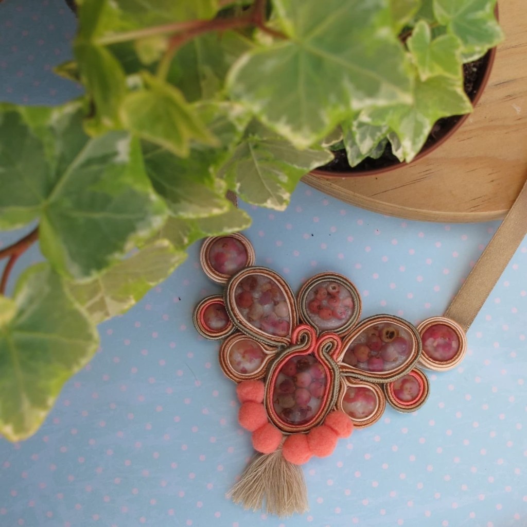 Los accesorios de Coralli Blu son elaborados con 2 técnicas: soutache y resina, con el valor agregado de que Raibel preserva plantas, semillas locales y entre otros, lo que le aporta una gran personalidad y autenticidad a sus piezas. Cada pieza es enviada o entregada con un impreso con información sobre su creación y origen de la planta preservada.